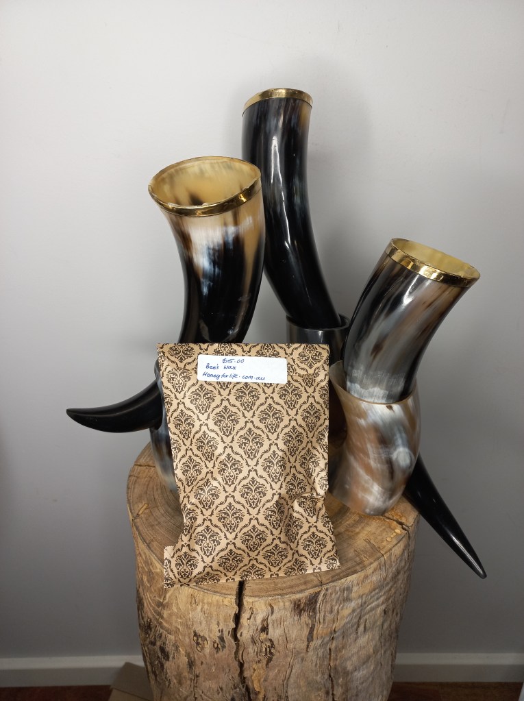 You can choose to seal your drinking horn with Bee’s wax, Food safe resin or Salad Bowl finish, each has its advantages and disadvantages.