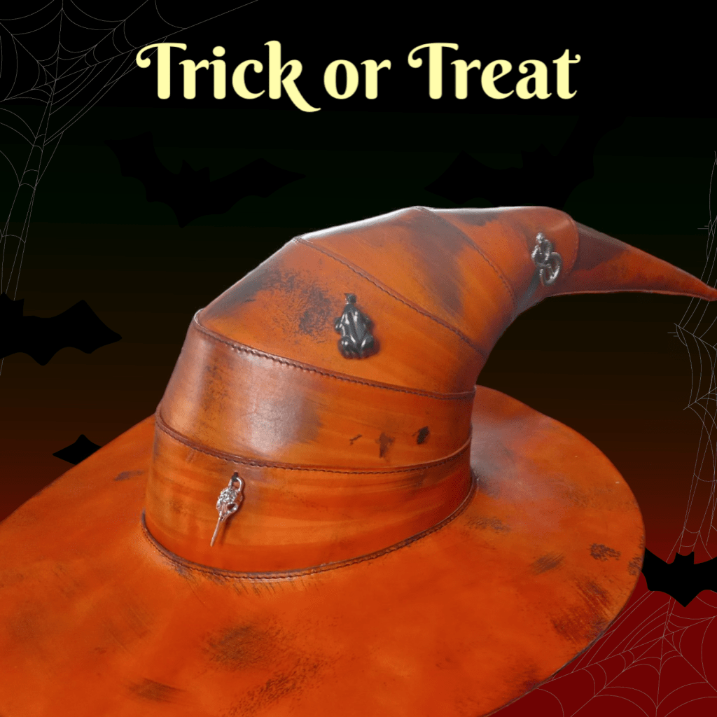 Hats are created from 2mm vegetable tanned leather. They come in sizes small to extra large.